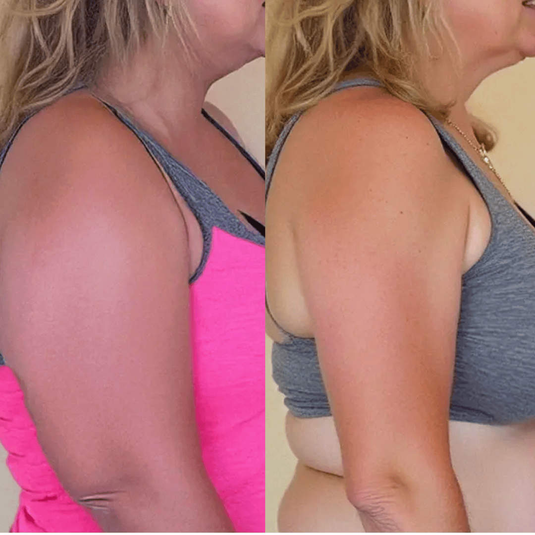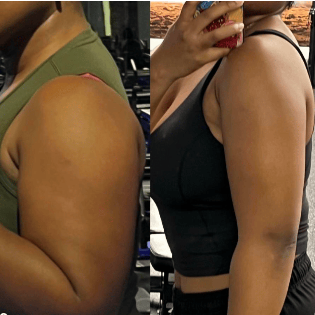 Your arms look smaller, firmer, and more sculpted. Muscle tone shows through, jiggle is reduced, and your arms finally match how hard you’ve been working.
