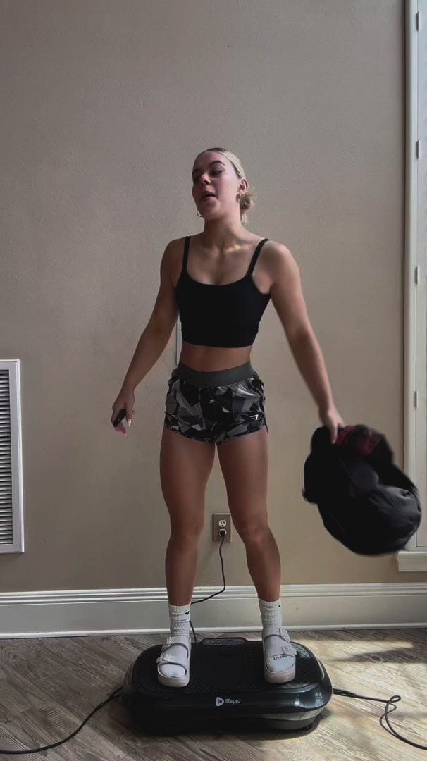 The Vibro Pro is great for a wide range of exercises including squats, lunges, planks, push-ups, and upper body exercises using the included resistance bands. It’s a versatile platform for both strength and flexibility training.